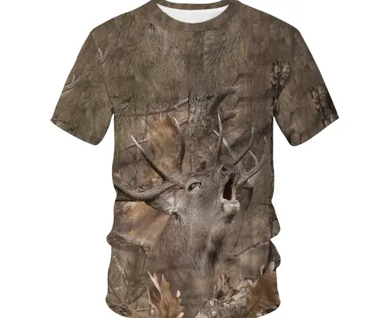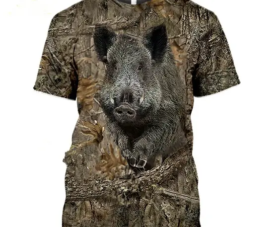 🦌 חולצת קמופלאז' עם הדפס ציד – צבי, חזיר פרא וארנבת! 🎯