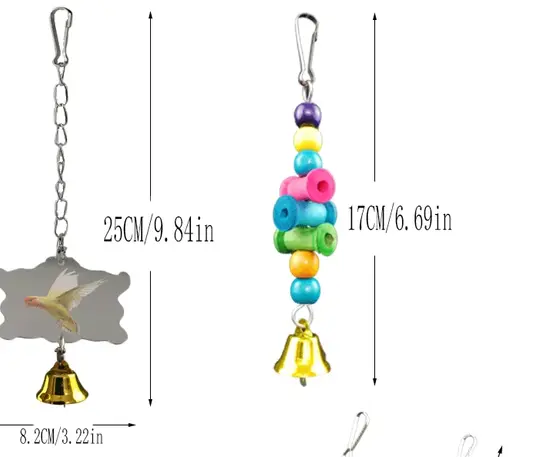 הפתרון המושלם לשמור על הציפור שלך פעילה, שמחה ובריאה – סט צעצועים תלויים ומגוונים, המשלב נדנדות, תופים קטנים, כדורים, פעמונים ומדרגות – הכול בעיצוב צבעוני ומגרה.