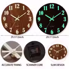 🕰️ שעון קיר זוהר בקוטר 12 אינץ' – עיצוב עץ שקט ומודרני עם אור לילה